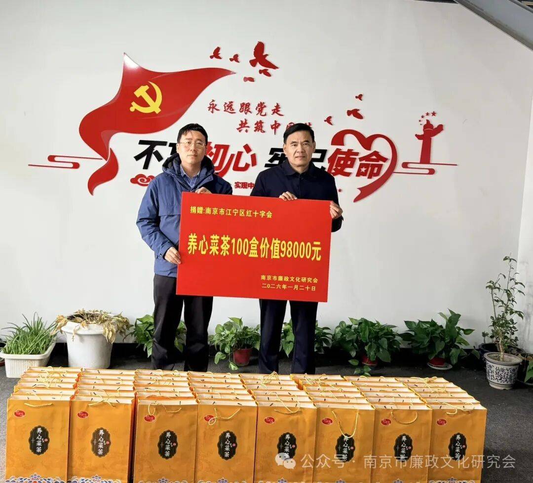 本次活动得到了南京市廉政文化研究会及爱心会员的积极响应与支持。慰问团成员秉持弘扬红十字人道精神的初心,主动向江宁癌友康复活动中心捐赠了由南京巧济堂药业有限公司提供的景田三七养心茶100盒,物资总价值人民币玖万捌仟元整。该批捐赠旨在帮助癌症患者增强免疫力,助力康复,所有物资均定向用于支持江宁癌友康复活动中心的相关帮扶工作。