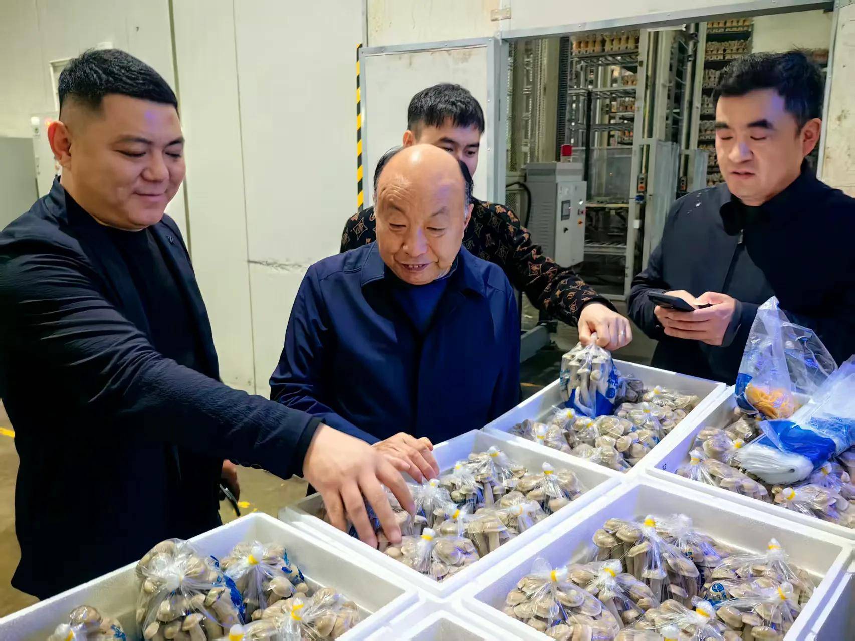 蘑菇大王丁伦保在江苏宿迁市泗阳县华绿生物科技股份有限公司考察