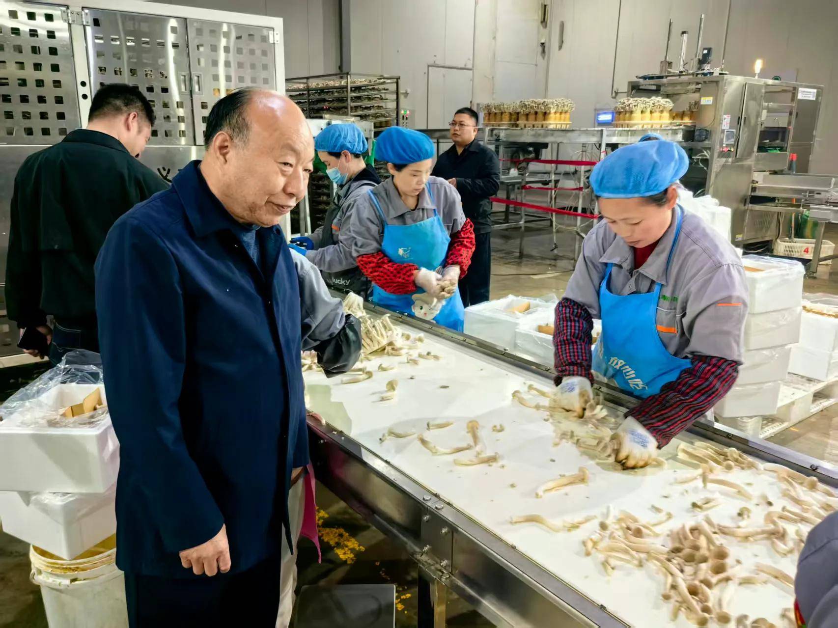 丁伦保一行在华绿公司相关负责人带领下,实际观摩灰树花、金针菇、蟹味菇、白玉菇、鹿茸菇等种植,了解自动化采摘,分级包装、出口等流程。丁伦保一边看,一边和随行人交流,他说,华绿生物(食用菌)公司能做成上市公司,不论是技术,规模,管理都是一流的,很多方面是先行一步的,最重要是重视人才,重视科技,实施规模化种植,网络化销售,做事注重实效,是他们的成功之本。
