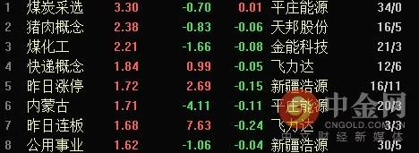 截止发稿,上证指数报收2772.35点,涨0.17%,成交760亿,创业板指报收1509.8点,跌0.02%,成交266亿。煤炭采选、猪肉概念、煤化工等涨幅前列,超级品牌、西 藏板块、美团概念等跌幅前列