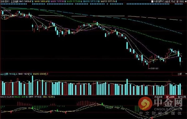 连续两天出现大阴线后,今天上午的K线基本上在昨天的下影线附近运行,是较弱势的。MACD死叉后空头力量显得比较强大,30分钟有降低跌势速率的感觉,有金叉的可能,但快速杀跌过后零轴位置的第一次金叉期望不要太高。