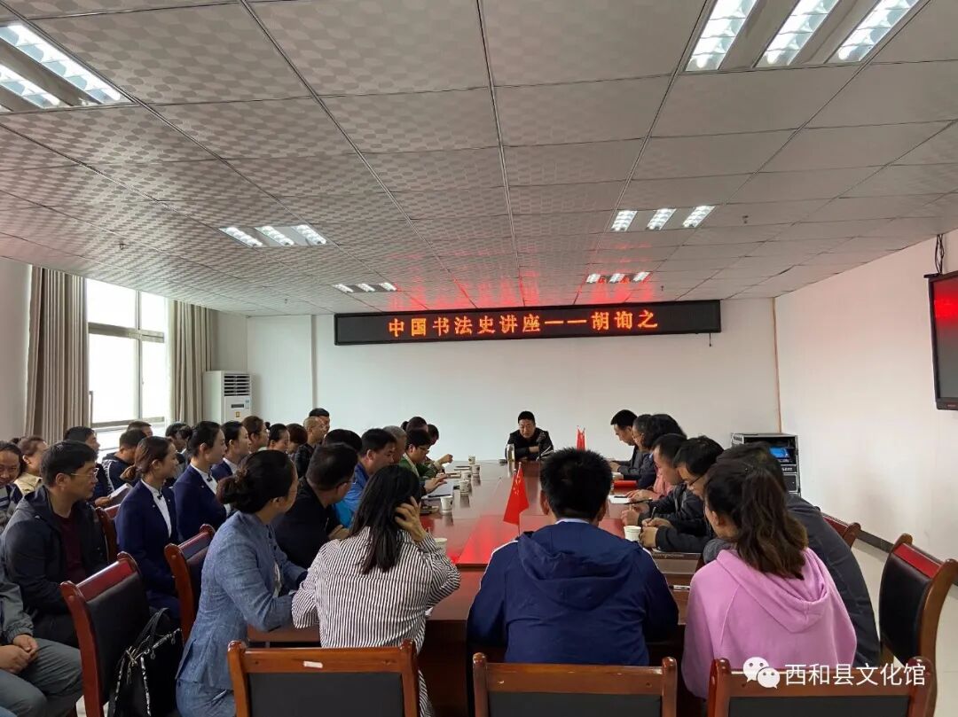 中国作家协会会员、甘肃省书法家协会会员胡询之还为观展的干部群众做了中国书法史讲座。来宾还与西和县博物馆工作人员一起,围绕博物馆管理、展厅陈列、社会教育等进行了广泛的交流。